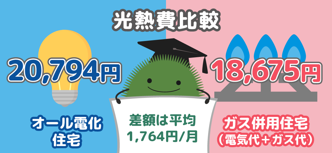 光熱費全体を比較すると、ガス併用よりもオール電化のほうが、1ヶ月あたり1,764円安いという試算結果になりました。