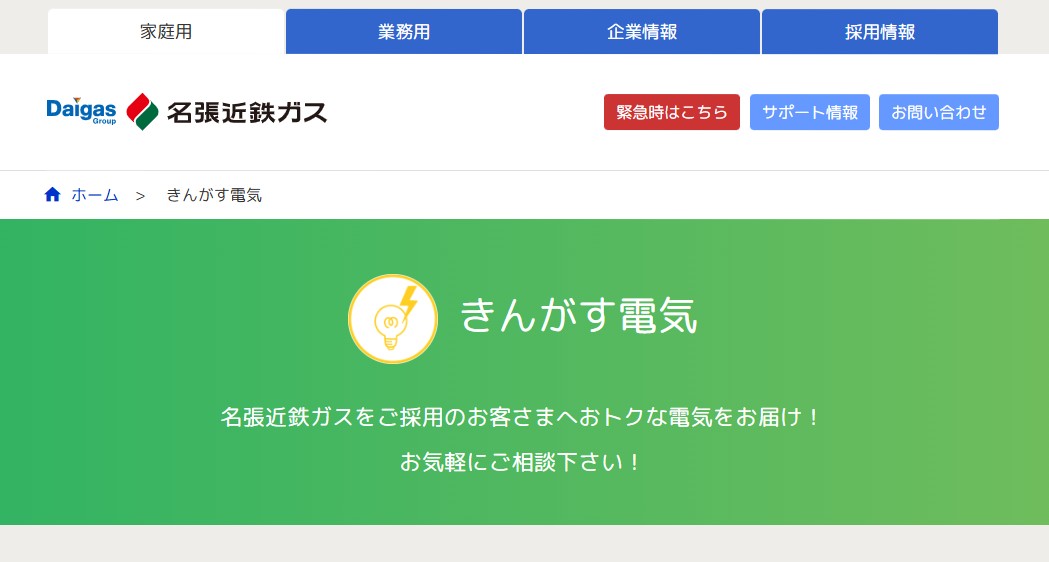 きんがす電気は、名張近鉄ガスが提供しているガス契約とセットの電気契約になります。名張近鉄ガスは、大阪ガスや名張市などが株主となって創立した地域のガス会社の1つです。メインの商材はガスですが、大阪ガスとの契約を取り次ぐ形で電気契約を提供しています。