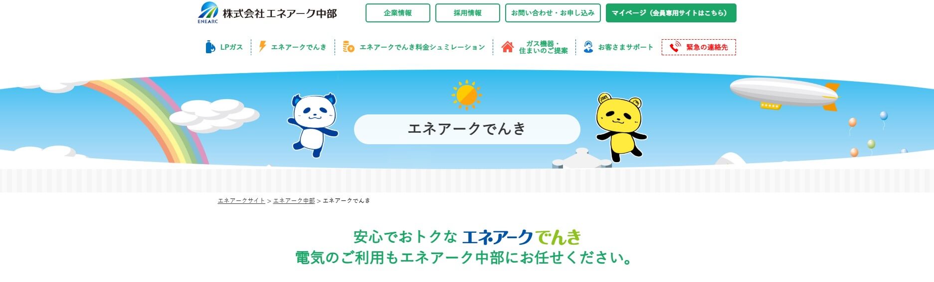 エネアークでんきは、エネアーク中部(株式会社エネアーク中部)が提供している電力サービスです。