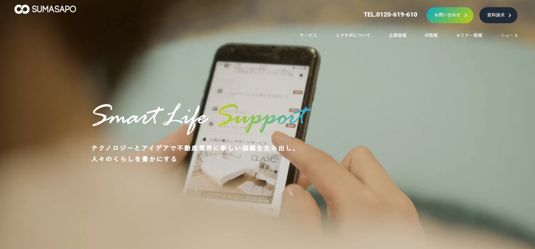 スマサポとは、テクノロジーとアイデアで不動産業界に新しい価値を生み出し、人々の暮らしを豊かにする企業です。