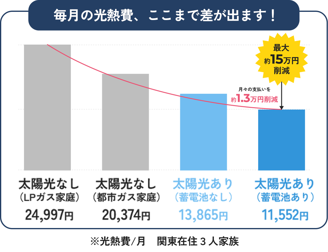 ご家庭の電気使用量や屋根条件によりますが、年間で5〜10万円前後の削減効果が期待できます。