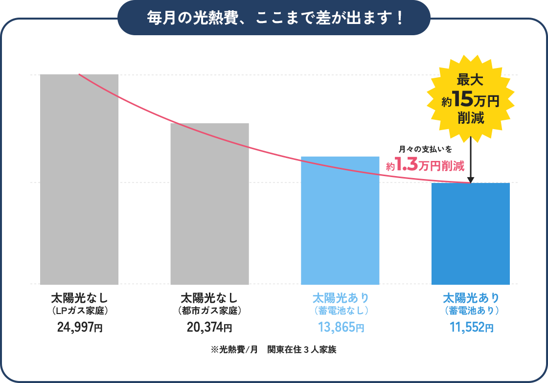 太陽光発電を導入する最大のメリットは、なんといっても電気代の大幅な削減です。