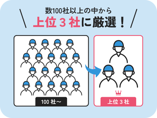 あなたの条件に最適な、最大3社の施工店から具体的な見積もり提案が届きます。価格やプラン内容、保証などをじっくり比較検討!